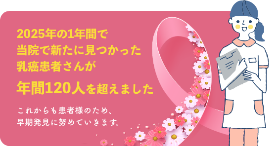 年間200件以上の乳腺疾患の診断、手術に携わってきた乳腺専門医である院長が診察・診療を行い、お一人お一人のライフスタイルに合わせた乳がん治療を行います。再発予防についてもお任せください。